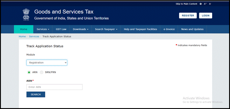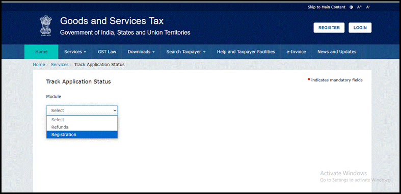 Step 2: Go to ‘Services’ > ‘Track Application Status’ on the GST Portal.